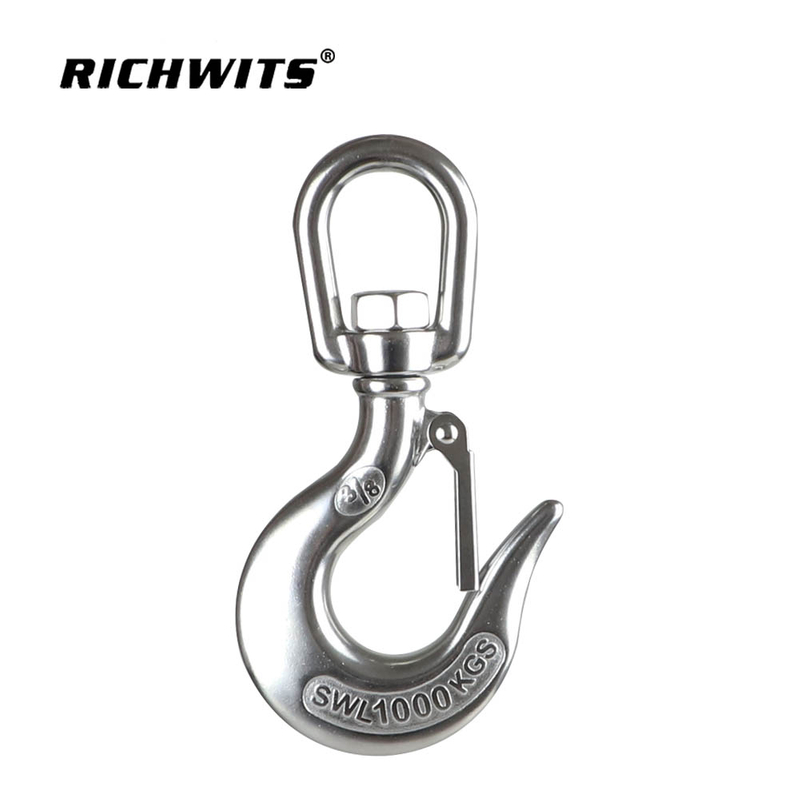 R: Compruebe el rebote del resorte (<1 s), el espesor de la punta del pestillo (≥ 90 % del original) y el juego lateral (< 0,5 mm). Reemplace el gancho si falla algún criterio.
