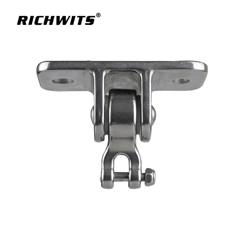 RICHWITS ZB4002 combina una placa de acero inoxidable 316 cortada con láser con un ojo de horquilla forjado, con forma de CNC para aceptar mosquetones, cadenas de hamacas o correas de columpio sin rozaduras.